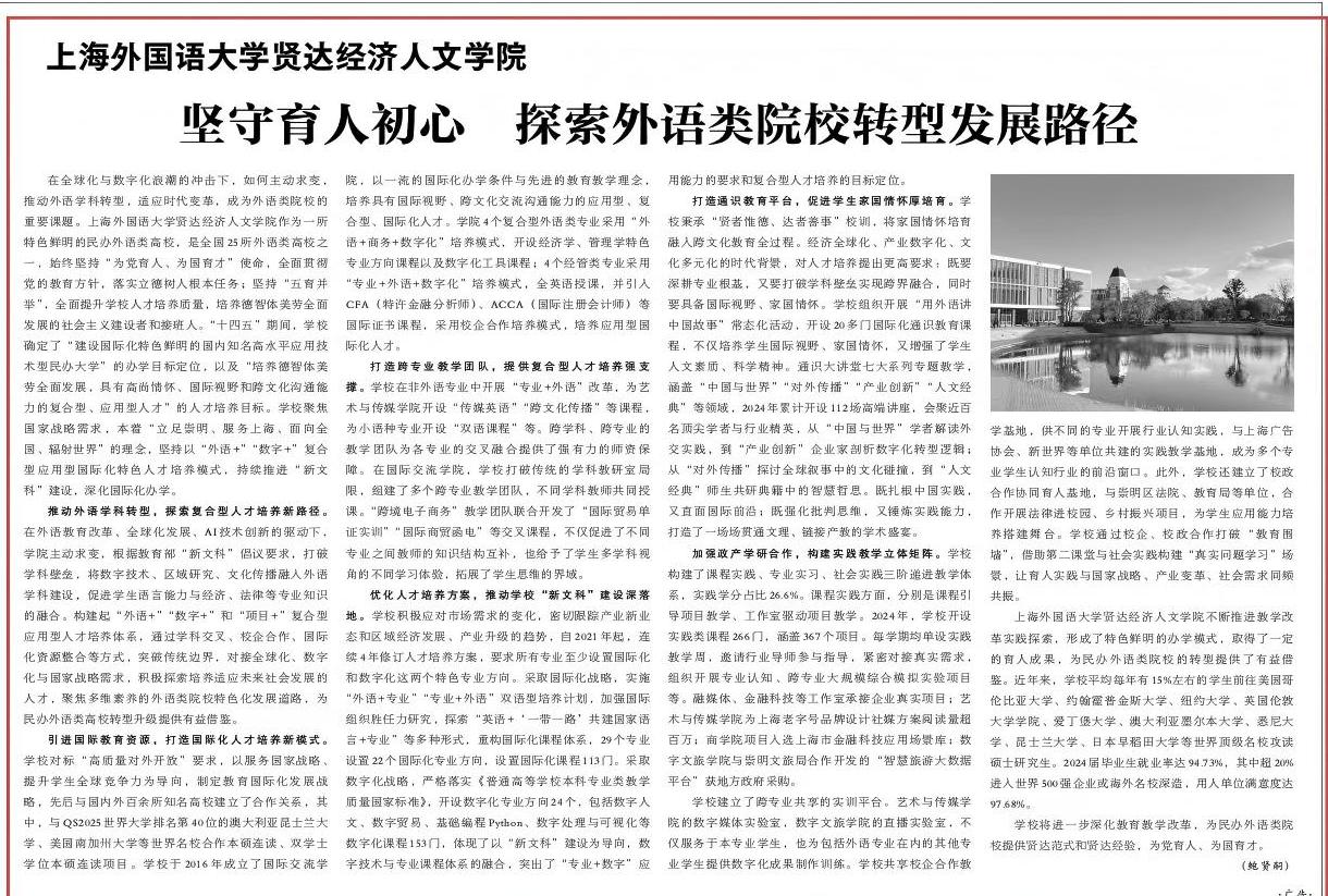 《光明日报》刊载鲍贤嗣董事长署名文章,上外贤达学院外语院校转型探...