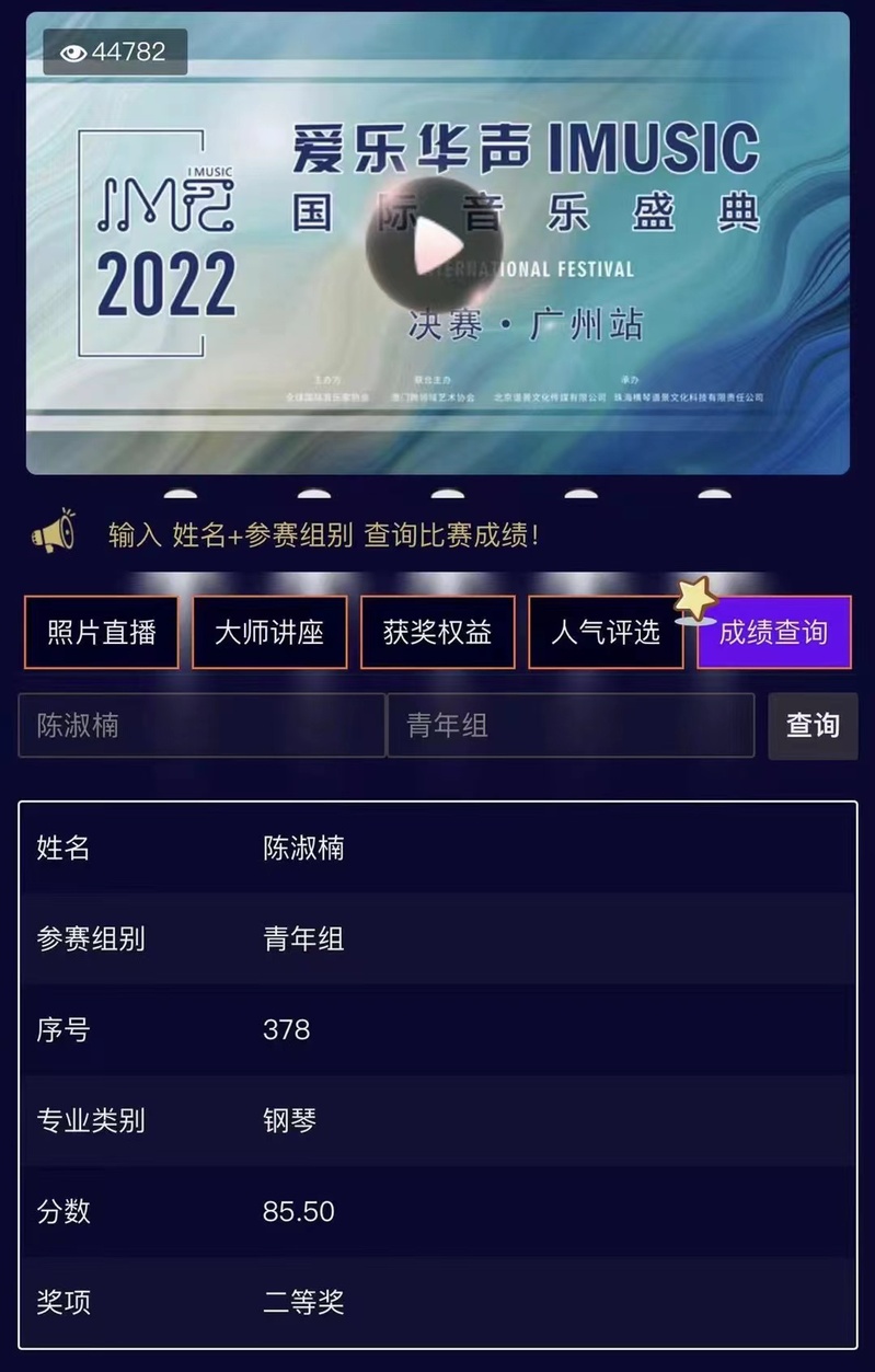 7月17日,2022爱乐华声· 国际音乐盛典决赛在广州拉开帷幕。本次大赛的评委均是来自国内各大高校的专家教授、国家一级演员等,参赛选手们也特别珍惜展示自己的机会,每首作品都唱出了他们对声乐的无限热爱。最终,经过为期5天激烈的角逐后,taptap教育学院音乐学专业2019级陈淑楠同学荣获二等奖。 供稿、图片 | 教育学院