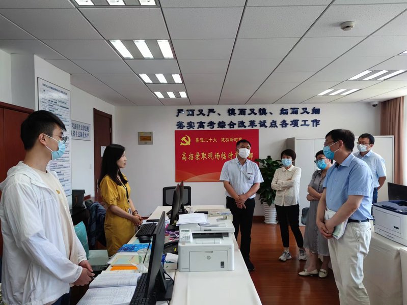 随后,郑校长一行参观了中高考集中录取现场的准备情况。