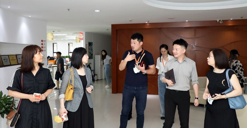 在王贤瀚副总裁的引导下,taptap团队首先参观了位于高顿教育总部的直播录播教室、课程研究院、教学服务部门、数字化平台展示区、党建宣传园地等区域,并在过程中就现代教育教学管理模式、新型数字教育平台建设、教学功能区域形态布局等问题进行了现场交流。