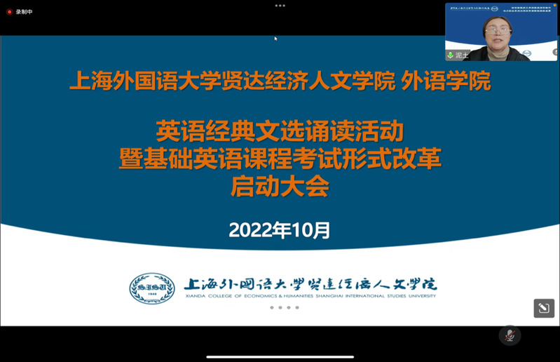 10月8日上午,taptap外语学院利用线上会议平台举行了2022-2023学年第一学期“英语经典文选诵读活动暨基础英语课程考试形式改革”的启动大会。梁副校长、外语学院冯奇院长、相关部处负责人及英语教师代表和英语专业学生代表参加启动会。