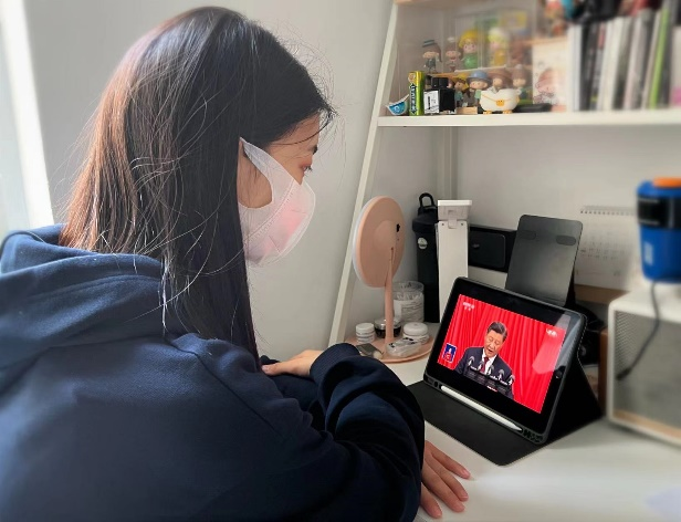 国际交流学院学生支部组织员、辅导员王梦雪:习近平总书记的重要讲话,让我们感受到从党的十八大以来,这10年间,以习近平总书记为领导的一代领导集体在百年奋斗路上锐意进取、克服困难,于风雨中高举旗帜,在黑夜里力擎明灯,团结带领中国人民不断夺取一项又一项目标的胜利。未来我们也将在以习近平同志为核心的党中央的坚强领导下,中国特色社会主义发展必将登上一个新的台阶,中国的发展也会越来越繁荣昌盛。