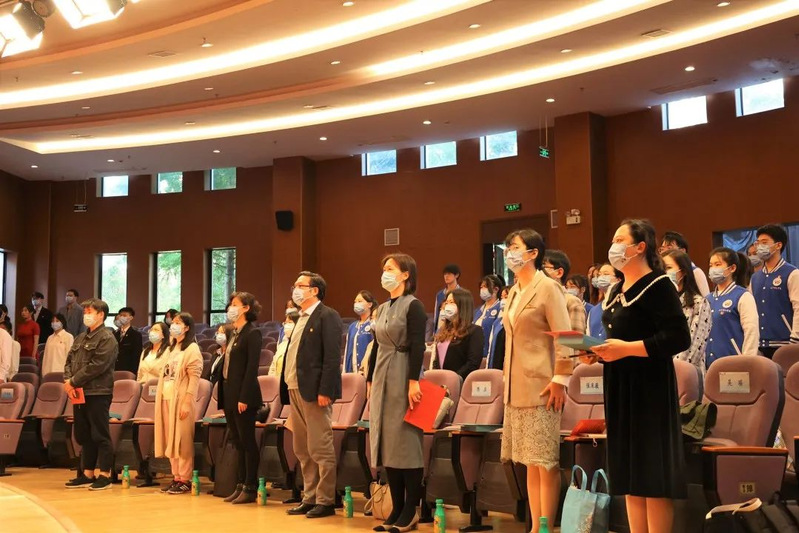 会议伊始,全体成员庄严起立,奏唱国歌。学生管理服务中心主任陈应老师为此次大会致辞。随后,校党委组织部部长陈琅玛老师宣读《关于表彰上外贤达学院2021-2022 学年春季学期校园疫情防控优秀志愿者标兵和优秀志愿者的决定》。各学院总支书记、副书记为优秀志愿者标兵代表和优秀志愿者代表颁发证书并合影留念。党委副书记王科老师为taptap第五届进博会志愿者服务队授旗。