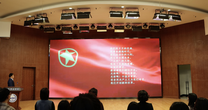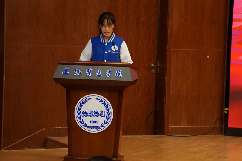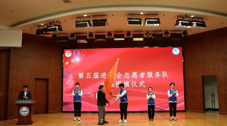 艺术与传媒学院“小叶子”蔡梦婷同学带领志愿者代表上台宣誓,共同许下“以青春相约进博、以拼搏助力进博”的庄严承诺!