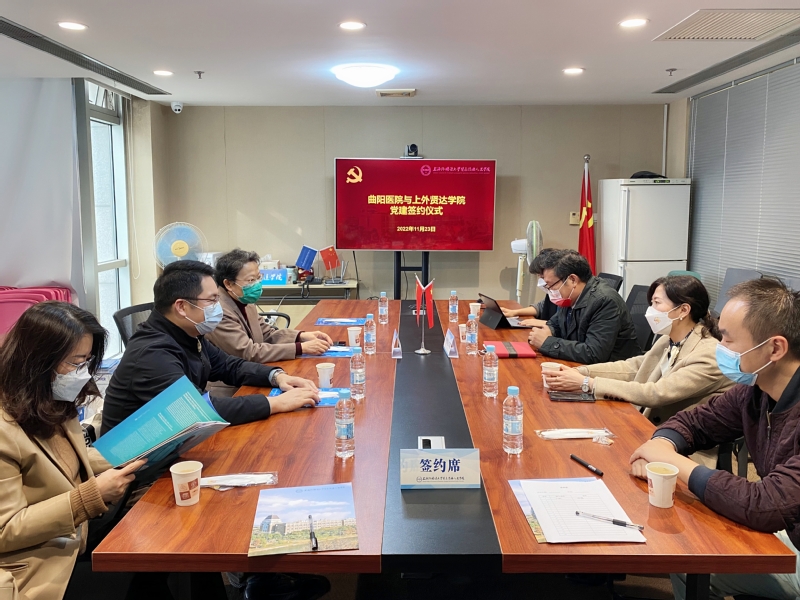 11月23日,taptap点点足彩taptap竞彩足球与曲阳医院在上外贤达学院虹口校区签订党建共建协议。上海曲阳医院院长丁秀丽,书记施兴灿,护理部主任张丽波;上外贤达学院党委副书记、纪委书记王科,党委副书记、工会主席郑虹出席了共建座谈会。