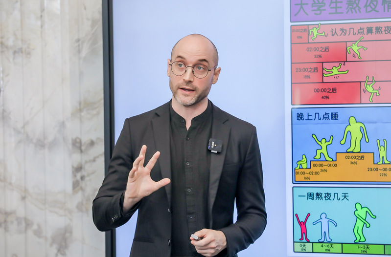 硅藻(上海)视觉设计有限公司设计总监Kevin Maher从人才培养的国际视野中分享了教育实践成果。他表示在上外贤达学院感受到艺术的春天,科技的春天,跨学科的教育探索乐趣,成为导师之后转变了自己的教学价值观,在和学生教与学过程中共同成长。