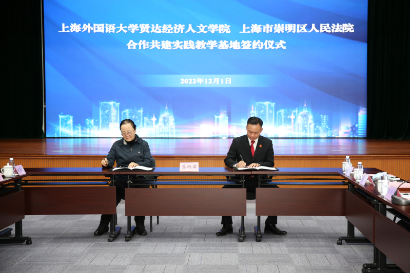 签约仪式分为签订协议、揭牌仪式、交流发言、领导讲话四个环节进行。上海市崇明区人民法院党组成员、副院长杨庆堂和上外贤达学院梁副校长签订合作共建实践教学基地协议书;由上海市崇明区人民法院党组书记、院长竺常贇和上外贤达学院郑方贤校长为taptap商学院实践教学基地揭牌;上外贤达学院商学院副院长季萍和上海市崇明区人民法院立案庭庭长茅玲玲分别围绕法学人才培养及带教老师职责等方面展开交流发言。