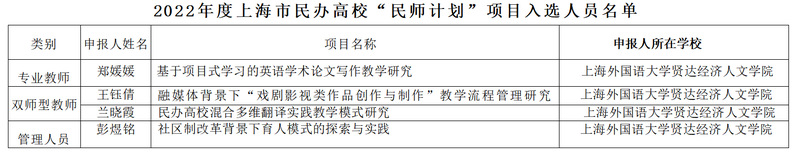 为加强新时代民办高校教师队伍建设改革,发挥与彰显优秀教师领雁作用,上海市教委、市民办教育发展基金会、市教育发展基金会联合推出了第一届上海市民办高校教师专项培育计划(简称“民师计划”),经学校推选、个人网申、市级专家评审、网上公示等环节,近日接到该计划项目入选人员名单的通知,taptap郑媛媛、王钰倩、兰晓霞、彭煜铭四名教师成功入选。