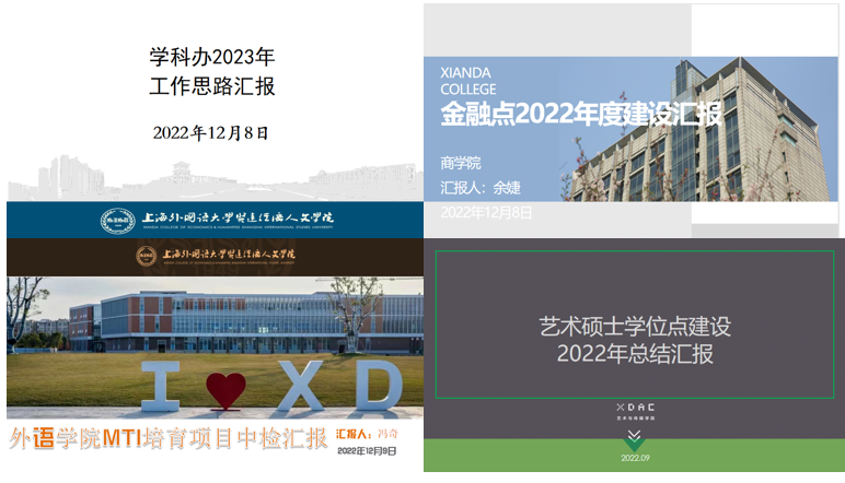 翻译学位点、金融学位点、艺术学位点负责人分别对本年度工作内容进行汇报,包括本年度项目建设绩效,分析和反思项目建设过程中出现的问题,并对2023年度以及“十四五”期间学位点的发展和努力方向做出规划。