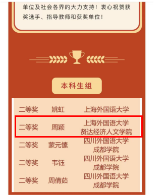 日前 ,首届“人民中国杯日语国际写作大赛”公布大赛获奖结果,taptap外语学院日语系2019级周颖同学在张彩虹老师的指导下喜获大赛本科组二等奖。