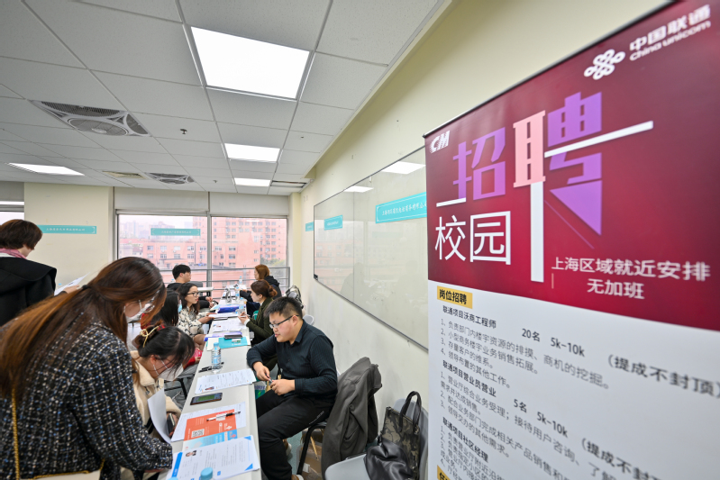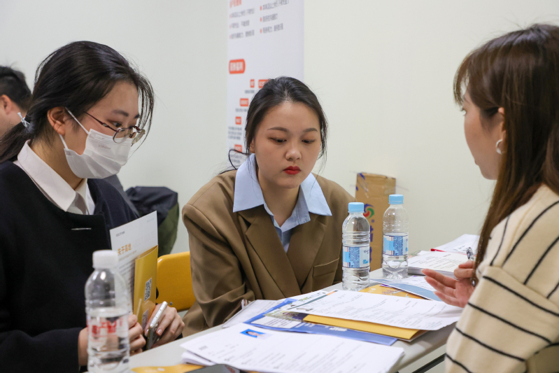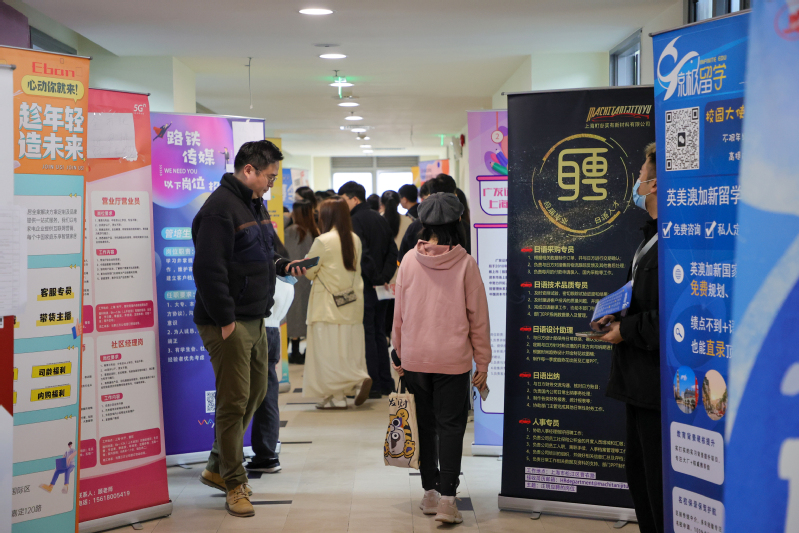 外语学院德语专业陈东啸同学说,此次招聘会让其体验到就业面较窄、就业形势的严峻,同时感叹需掌握更多技能去补缺。艺传学院数字媒体艺术专业的同学寻找与自己专业相匹配的岗位进行沟通。数媒专业同学呼吁应届生要抓住机会,主动了解用人单位的岗位需求和相应的应聘条件,为自己积累更多的应聘经验,应对职场的激烈竞争。排队等候普华永道信息技术(上海)有限公司面试的同学也体会到了面试人数多竞争性强的就业形势。