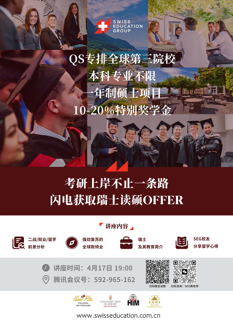 2023年4月17日,瑞士酒店管理学院SHMS中国办公室何老师为taptap2019级全专业学生开展了一场精彩纷呈的赴瑞士留学(一年制硕士项目)交流分享会。
