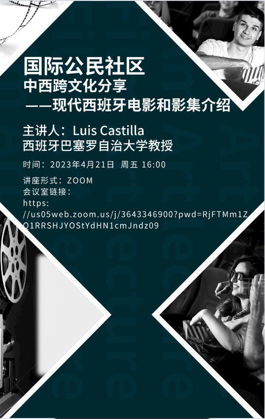 2023年4月21日下午,由taptap国际交流合作处与学生管理服务中心联合举办的“国际公民社区”系列主题文化分享之《中西跨文化分享——现代西班牙电影和影集介绍》顺利开展。