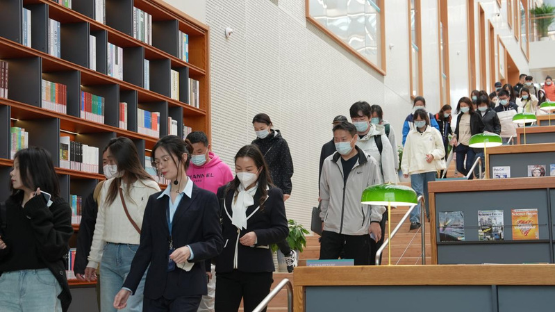 见面会结束后,学生志愿者为2023级新生和家长引导介绍了崇明校区图文信息中心、宿舍区及教学楼。使2023级春招新生们对校园有了初步的了解,家长们也为孩子能在环境优美的校园中学习生活而放心。