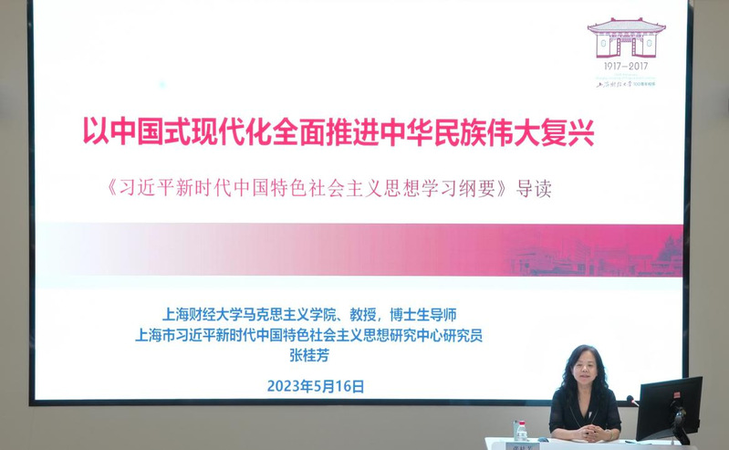 为坚持把习近平新时代中国特色社会主义思想转化为坚定理想、锤炼党性和指导实践工作、推动团队凝聚力量,5月16日下午,上外贤达学院在崇明校区大师讲堂举办读书班学习活动,特邀上海财经大学教授、上海市思政课教学名师、上海市习近平新时代中国特色社会主义思想研究中心研究员张桂芳担任此次党课主讲人。报告会由党委副书记王科主持,校党委班子成员、中层干部、党务干部、辅导员代表参加了此次读书班学习。