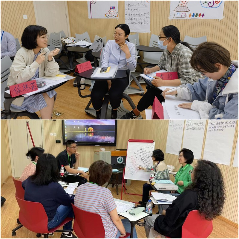 研修过程中,五大主题课程以教学设计中经典的教学模型、重要而关键的教学技能作为研修的起点,贴合研修者实际需求。每次迷你教学循环演练后,引导员都针对参训教师的教学设计与实施引导个体反思并进行集体反馈,强化BOPPPS模型的应用。在高强度的研修过程中,各位参训教师们积极参与,深入讨论了教学方法、课程设计和教学评估等方面的内容。通过互动交流,各位老师更新迭代了教学理念、突破自我尝试了新的教学策略和方法,并在深刻反思自己教学设计的同时也能积极为同伴提供建设性的反馈。
