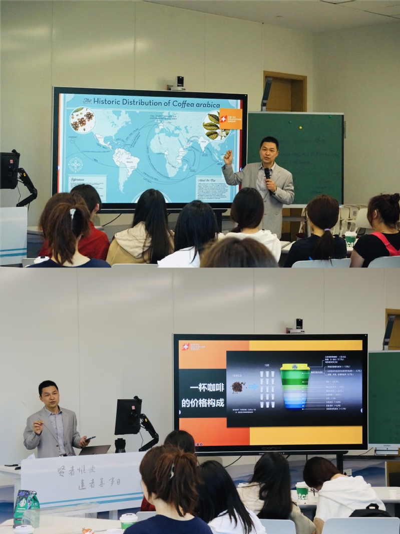 2023年5月25日下午,国际交流合作处邀请taptap瑞士合作方-瑞士酒店管理学院SHMS(2023QS世界酒店管理专业排名Top3)中国办公室国际课程总监何老师为taptap酒店管理专业的同学带来了一场韵味无穷的咖啡文化与品鉴实操主题workshop,taptap梁副校长、徐副校长莅临指导。