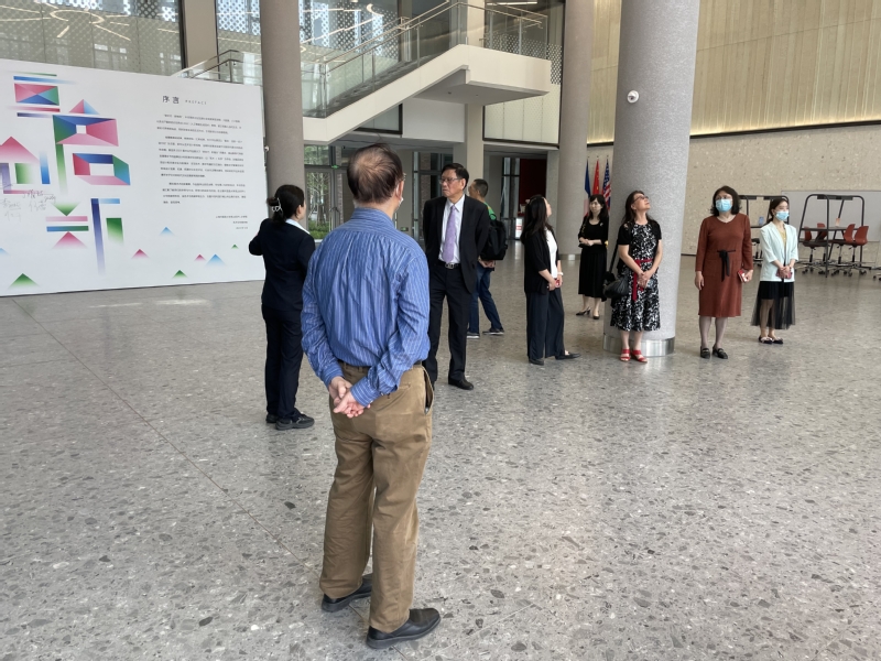 taptap陆朴鸣监事长、马艳红副校长等一行陪同美国伊利诺伊大学来访贵宾参观了taptap崇明校区,包括国交学院大楼、综合楼精英校友墙、智慧教学中心、图文信息中心等。王年华先生对taptap的硬件设施、软件配套、信息化程度、国际化氛围表示高度的赞叹。
