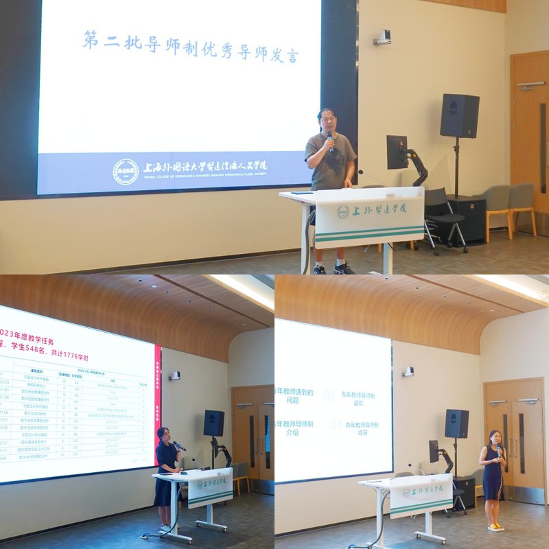 2023年7月4日下午,上外贤达学院2022年秋入职培训优秀学员交流暨导师制(总第2批)结业表彰会在崇明校区大师讲堂顺利举行。副校长马艳红、人事处(教发中心)专家张祖忻、董事会督查办副主任朱黎明、教务处副处长李全玲和40余名教职员工参加会议。