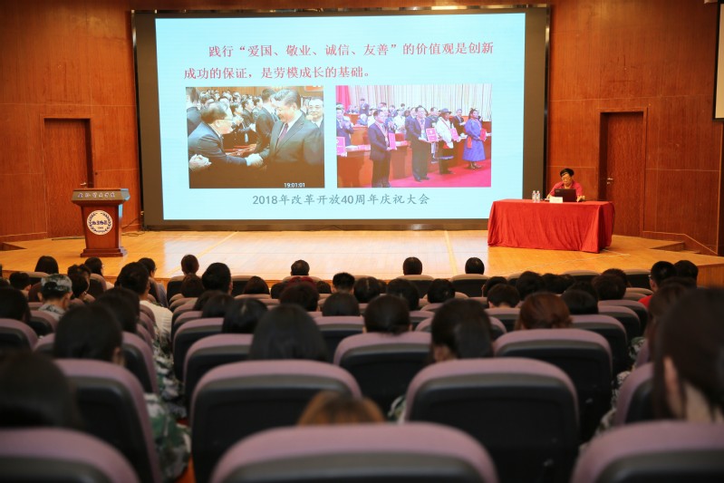 包起帆教授从自己在上海港白莲泾码头初做装卸工的人生起点时期讲起,凭借着他的创新精神,在近几十年的时间里,在国内和国际舞台上连续获得多项各类奖章。他表示,践行“爱国、敬业、诚信、友善”的价值观是创新成功的保证,是劳模成长的基础。