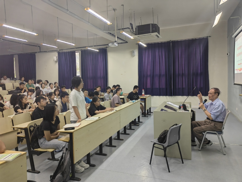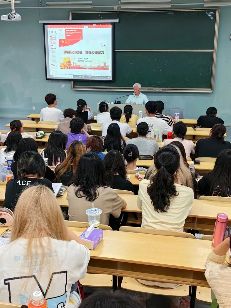 在“大学生心理健康”课上,崇明区政协原副主席,上海市民办髙校关工委指导团成员姚振尧,告诉同学们怎让才能提髙社会认知,增强心理定力。