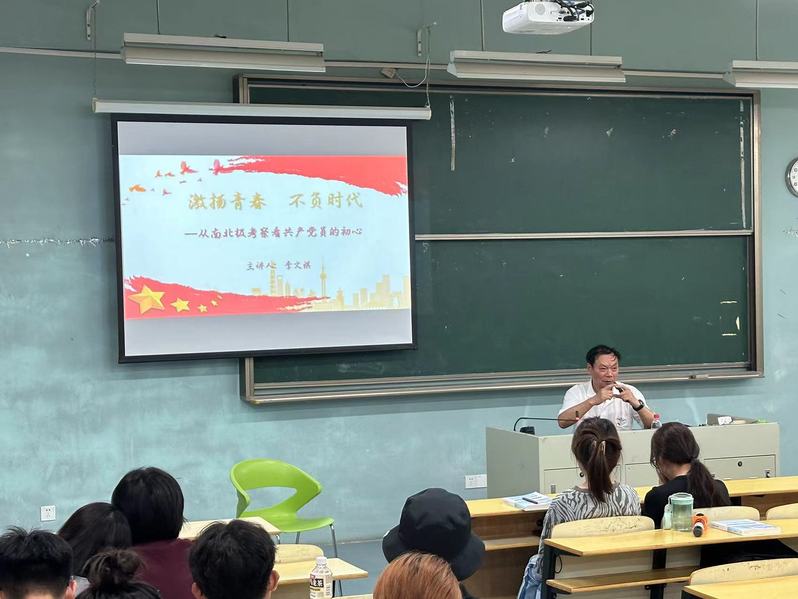 在“中国近现代史纲要”课堂上,原《解放日报》驻京办事处主任、髙级记者、范长江新闻奖获得者李文祺,讲述了雪龙号南北两极考察过程中,共产党员坚持初心使命的感人事迹,号召同学们要听党话、跟党走。