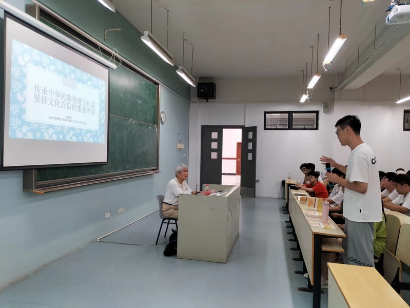在“马克思主义基本原理”课堂上,上海市非物质文化遗产保护工作专家委员会委员吴祖德,讲授了传承中华民族传统文化是坚持文化自信的重要内容,鼓励大学生树立文化自信。