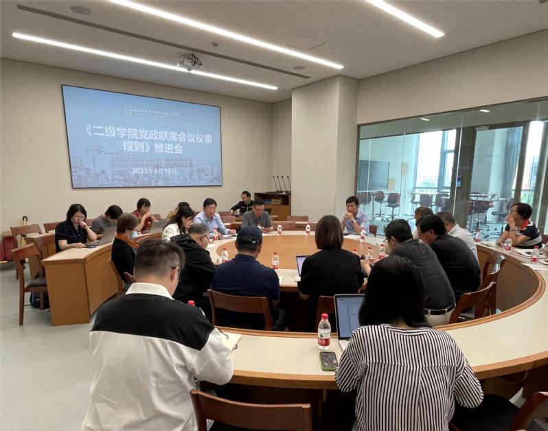 会上,党委副书记郑虹解读了《二级学院党政联席会议议事规则》修订前后的主要区别和变化之处。督办副主任朱黎明通报了上学期二级学院党政联席会议调研情况。校办副主任张宇华分享了《会议记录》《会议纪要》模板。与会人员进行交流讨论。党委副书记王科对下阶段二级学院党政联席会议的召开作部署。