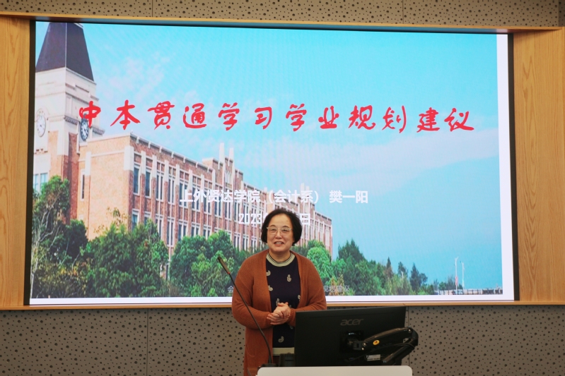 会计学学科带头人樊一阳教授则结合实际案例,阐述了学业规划的重要性。她开篇向同学们提问:如何面对人生第一个“七年”学习规划。随后,她给出了学业和职业的发展规划,鼓励同学们培养优良的道德品质和良好的生活习惯,同时要注重训练正确高效的学习方法。她让同学们记住自己与同龄人的不同不处在于学习目标更加明确,他们七年的学习连贯了少年、青年甚至成年阶段。
