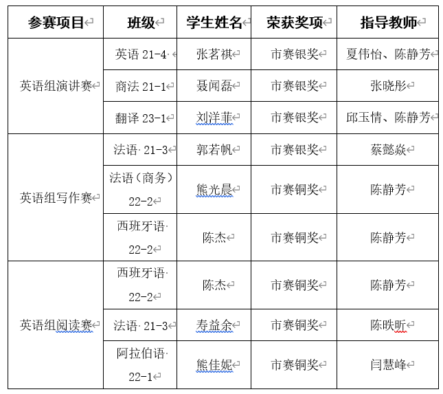 上海市赛获奖名单