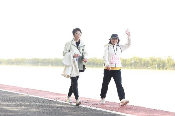 随着节奏欢快的开场热身操,校领导们热情高涨、健步如飞,以饱满的精神开始比赛,顺利完成6公里赛程及打卡任务,大踏步冲向终点。