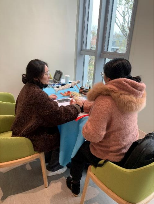 活动期间共有60余位教职工参与。健康管理师和教师开展了一对一健康咨询。两位健康管理师分别在两校区耐心聆听教职工的健康问题,通过把脉问诊等方式,量身为教职工定制属于自己的中医理疗方案,提供常见病保养及调理建议。此外,大部分教职工体验了脉冲针灸和艾灸刮痧、拔罐、推拿等调理项目,纷纷表示满意度很高。