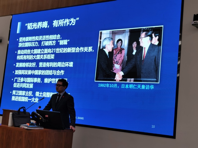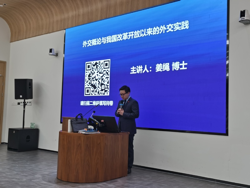 开课第一讲由马院副教授、教研室主任姜绳博士开讲。他以“外交概论与我国改革开放以来的外交实践”为题,深入浅出地叙述了理论知识,栩栩如生地描绘了中国当代外交史上真实的故事,特别是改革开放以来的历程,精彩且完整地呈现了课程主题。