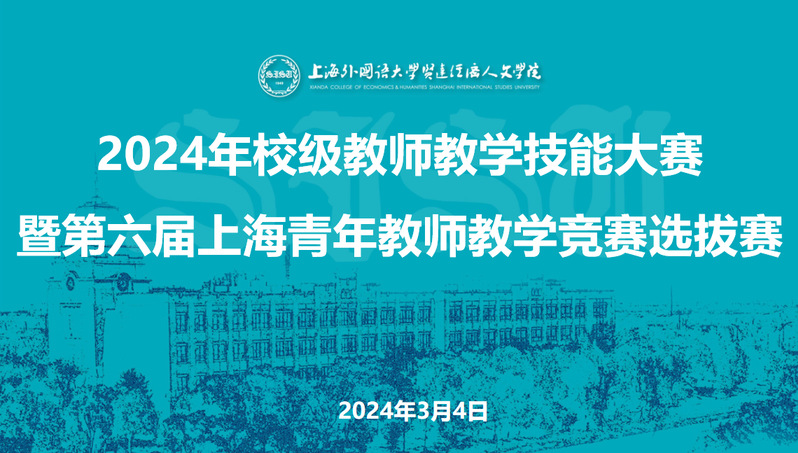为深入学习贯彻习近平新时代中国特色社会主义思想和党的二十大精神,深入落实习近平总书记关于教育和工会工作的重要论述、考察上海重要讲话精神,进一步贯彻落实中国工会十八大精神,根据市教卫工作党委、市教委、市总工会联合举办第六届上海高校青年教师教学竞赛暨第七届全国高校青年教师教学竞赛选拔赛的相关工作安排,激励广大青年教师教书育人、岗位建功,学校举办了2024年校级教学技能大赛暨第六届上海青年教师教学竞赛选拔赛,为市赛选送优秀参赛教师。校级决赛于3月4日下午圆满完成,本次比赛主题为“上好一堂课”。