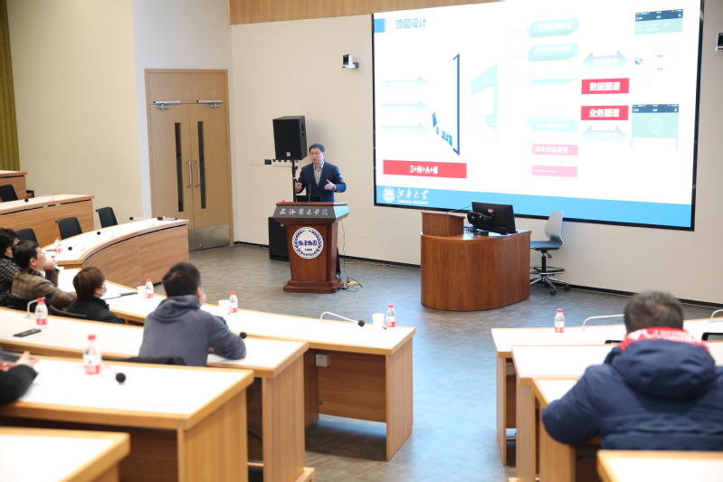 田备教授以“能源管理、赋能校园”为主题,从顶层设计系统谋划、能源管理系统建设、赋能校园系统发展等三个方面对智慧校园建设进行了细致讲解,讲座内容充实,学术氛围浓厚。