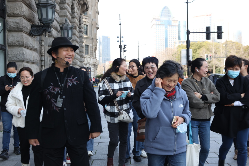 会后,与会人员前往上海著名历史建筑群,开展《繁花》CityWalk活动,一起用王家卫的方式感受老上海文化。上海拥有大量风格迥异的近现代优秀历史建筑,承载着上海城市文化的记忆,是一部活着的历史书,是可以感知的时代记忆,是极其珍贵的城市文化遗产。上海市“四有”好教师、上海“建筑可阅读”宣传大使周培元为大家一一讲解了建筑背后的故事。大家一边欣赏着优美的历史建筑,一边感受着上海艺术、文化的魅力。