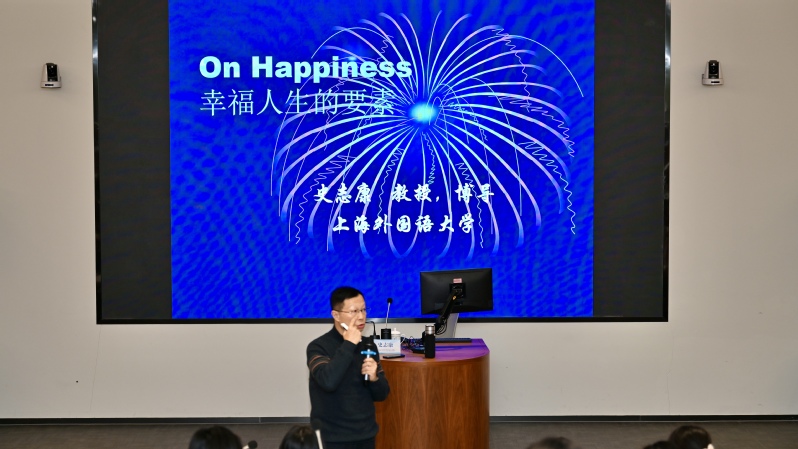 讲座在史志康教授对莎士比亚、道德经、论语等经典文献的思想精髓提炼中拉开序幕。他分别从健康的身体、心灵的愉悦、道德的高尚、必要的生活条件等维度进行了系统讲解,引用林语堂先生关于读书与生活的认知观点,强调了读书的重要性以及智慧与学识对于构筑幸福人生的深远影响。同时,指出健康是幸福人生的关键要素之一,并进一步阐述体魄、心情、心态对于幸福生活的重要性。同学们纷纷表示,通过这次讲座,更加明白以积极乐观的态度面对生活的重要性以及如何创造幸福人生。