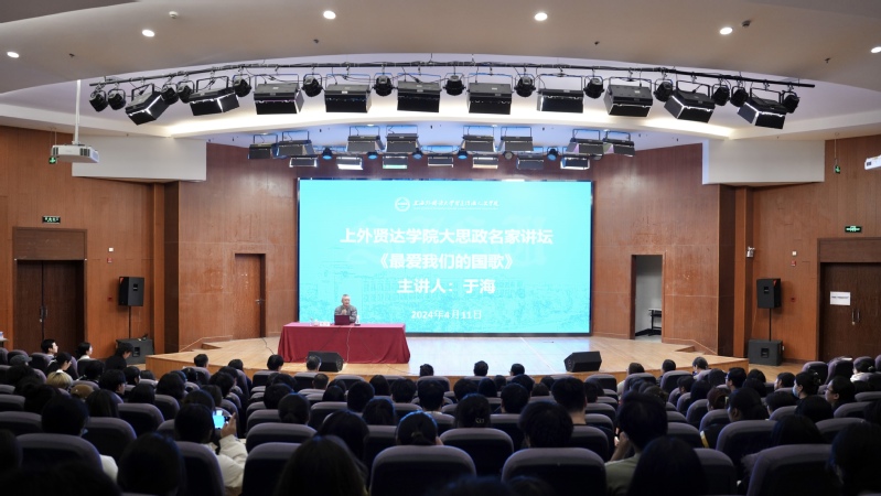 4月11日晚,上外贤达学院大思政名家讲坛特邀著名指挥家于海教授来校讲授《最爱我们的国歌》专题讲座。校长郑方贤陪同于海教授一行参观校园,校党委副书记王科出席并主持讲座,党委相关职能部门负责人、全体党务干部、预备党员、校国旗护卫队成员及学生代表到场聆听讲座。