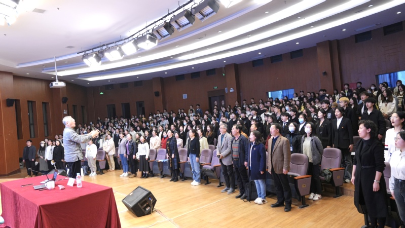 “爱国,请从唱好我们的国歌开始。唱好国歌,从我们自己开始。”他教导师生,要热爱我们伟大的祖国,将奋斗作为青春最亮丽的底色,努力成为有理想、有本领、有担当的中国特色社会主义事业的建设者和接班人,为实现中华民族伟大复兴的中国梦而拼搏奋斗。讲座最后,在于海教授的指挥下,全体师生起立放声高唱《义勇军进行曲》。嘹亮的国歌声响彻整个报告厅,在场师生热血沸腾,大声唱出了赤子之心和爱国热忱,民族自豪感倍增。师生们纷纷表示这是一堂生动的大思政课,深刻理解了国歌的精神实质和丰富内涵,接受了一次精神上的特殊洗礼。