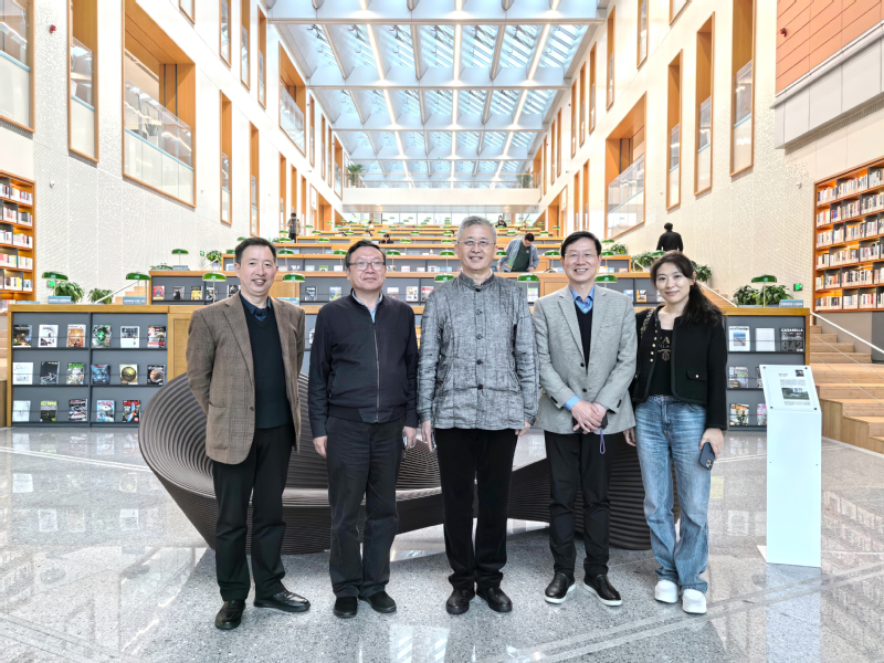 (校长郑方贤陪同于海教授一行参观校园)