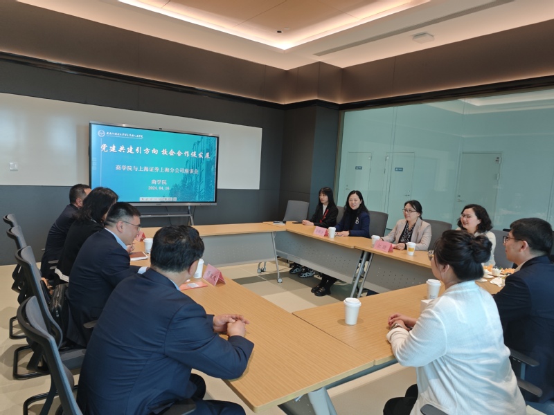 4月16日下午,上海证券有限责任公司上海分公司总经理薛旎、崇明区东门路营业部总经理费敏、崇明区堡镇中路营业部总经理顾欢欢等一行来到taptap,在崇明校区商管楼316会议室与商学院党政领导共同开展“党建共建引方向 校企合作促发展”座谈会。会议由学院党总支负责人姜老师主持。