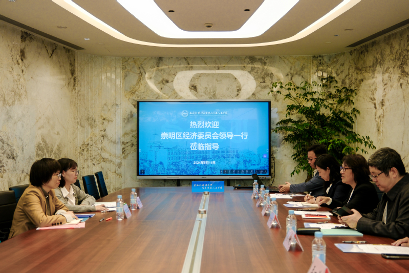商学院院长王晓光向崇明经济委员会领导详细阐述了商学院在崇明产业金融与产业转型发展研究中心建设方面的最新进展,突出介绍了建设该创新中心在促进地区产业升级和金融创新中的核心角色和作用。艺术与传媒学院数字光线教研中心靳雄主任分享了学院在产品设计、空间设计及非物质文化遗产传承等领域的产教融合成就。