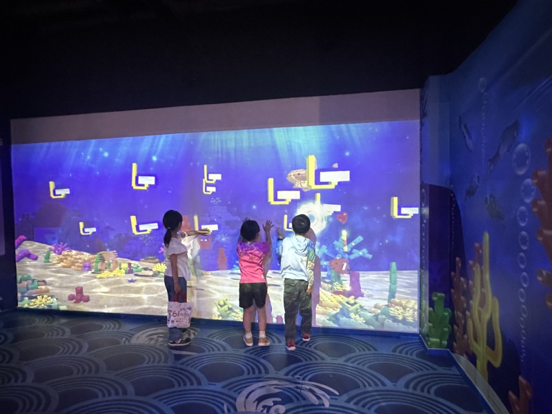 孩子们沉浸在神奇海洋主题区内,用乐高积木创造海洋生物,他们凭借丰富的想象力,用乐高积木创造出形态各异的海洋生物,借助科技投影技术,拼搭完整的海底世界。孩子们穿梭于茂密海草丛中,尽情开启独特的海底寻宝之旅。