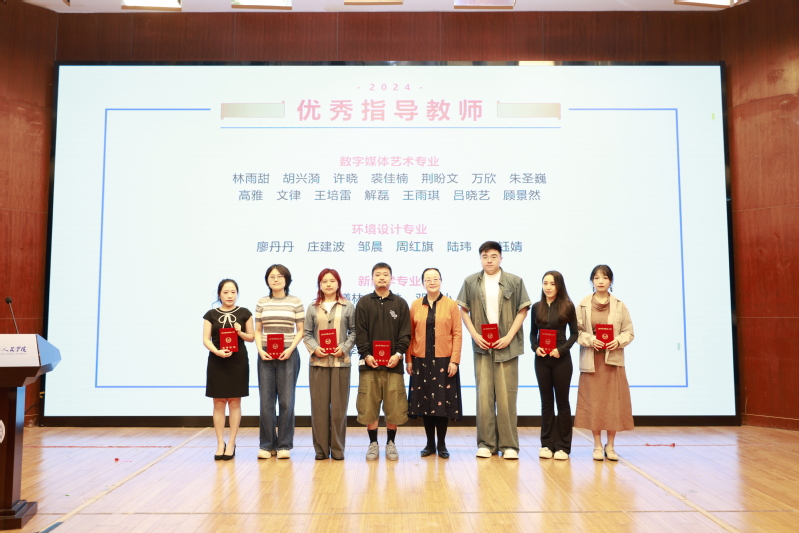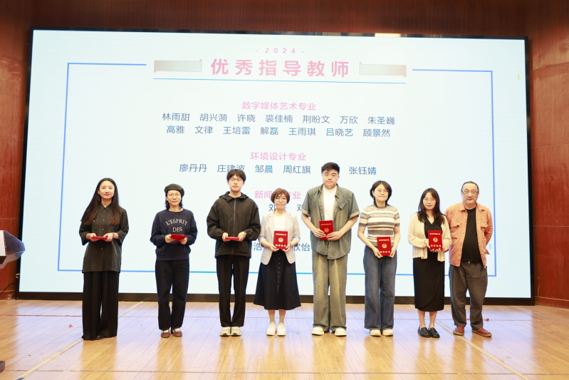 获奖作品是从数字媒体艺术专业、环境设计专业、广告学专业、新闻学专业782名毕业生完成的近300件作品里遴选,不仅全方位展现出艺传学子蓬勃生机和无限可能,也体现了艺传教师对学生耐心教导和殷切期盼。优秀指导教师代表李欣怡在发言中探讨了“作业”与“作品”的本质差异,强调作为教师不仅要引导学生探索未知,更要激发其内在潜能,教会他们如何从生活中汲取灵感,如何运用技巧与智慧创作出触动人心的作品,鼓励团队协作与独立思考,让每个学生都能在创作中找到自我,实现自我超越。