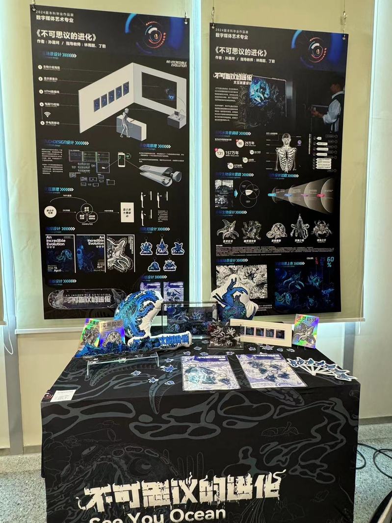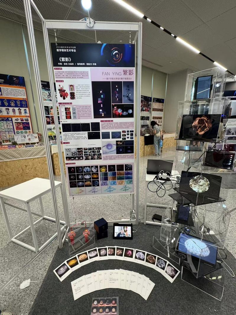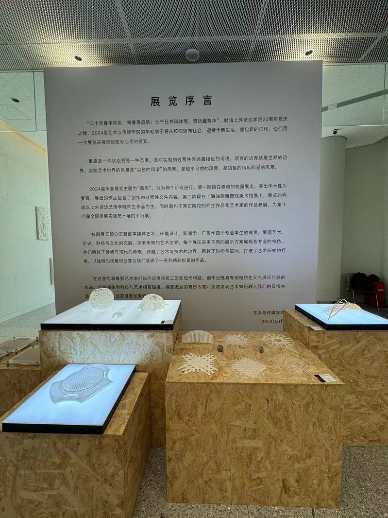 “2024届毕业展聚焦‘重启’这一主题,指向对实验艺术不断探索和创新的精神。”艺传学院副院长许月兰副教授在介绍毕业展情况时指出,“本次毕业展览分为崇明校园展和上海油画雕塑院美术馆展两个阶段进行,今天开启的第一阶段校园展,是数字媒体艺术、环境设计、新闻学、广告学四个专业的学生创作成果,学生们运用传统工艺和现代科技,创作出既具有地域特色又充满现代感的作品,充分表达了他们对艺术的理解和思考。第二阶段的上海油画雕塑院美术馆展,将以上外贤达艺传学院师生作品为主,同时邀约其它院校师生及各界艺术家的作品共同参展,该展会也是第十四届全国美展实验艺术展的平行展。