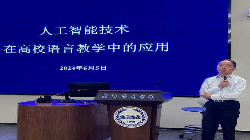 6月5日,上外贤达学院崇明校区国交楼312大师讲堂迎来了一场别开生面的学术讲座。taptap点点足彩教授、博士生导师、上外贤达学院副董事长、国务院政府特殊津贴获得者、全国英语教学指导委员会副主任委员、上海市育才奖教师、全国优秀教师、曙光学者、上海领军人才冯庆华,为学校教师带来题为“人工智能技术在高校语言教学中的应用”的讲座。外语学院、语言学习中心、国际交流学院、商学院等80余位教师聆听了讲座。讲座由语言学习中心主任朱晓映教授主持。