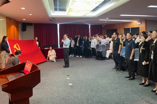 校党委副书记、纪委书记王科领誓,全体党员重温入党誓词