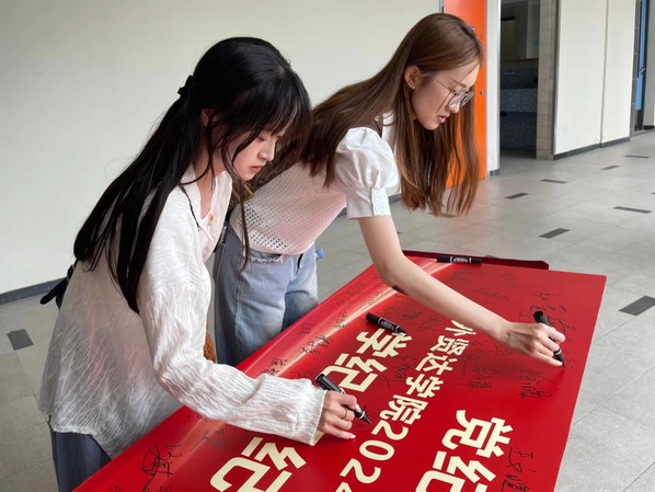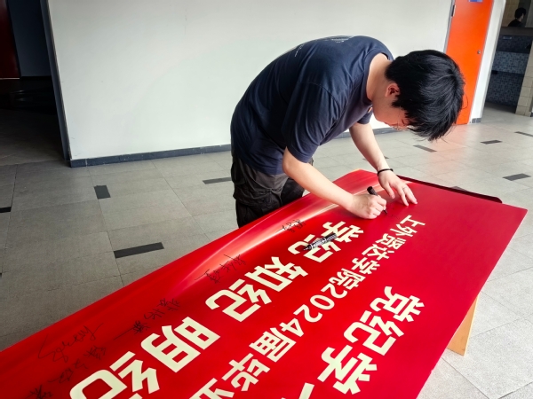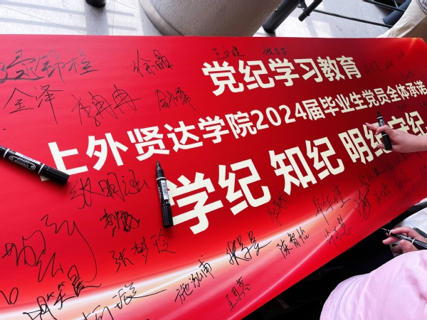 毕业生党员们还进行了党纪学习教育集体承诺签名,一起重温入党誓词。