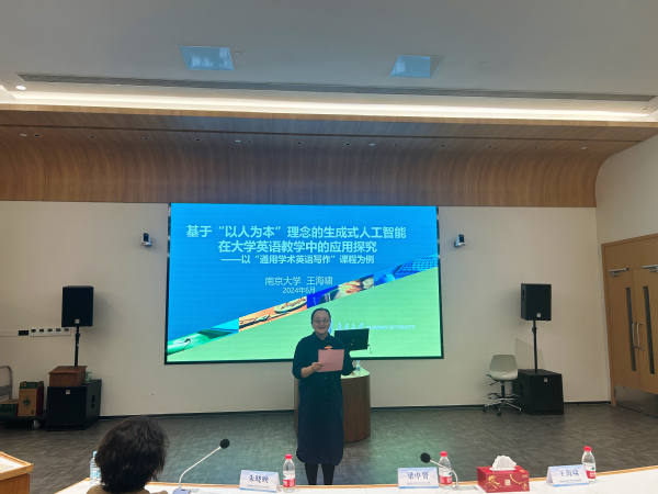 6月27日,语言学习中心邀请南京大学博士生导师、教育部高等学校大学外语教学指导委员会委员王海啸教授带来“基于‘以人为本’理念的生成式人工智能在大学英语教学中的应用探究——以‘通用学术英语写作’课程为例”的主题讲座。梁副校长出席并致辞。语言学习中心主任朱晓映教授主持。