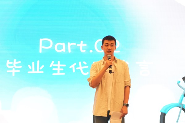 毕业生代表2020级金融(全英)专业金泽同学发表了毕业感言。他的话语中充满了对母校的感激与不舍和对同窗们的祝福与期许。他回顾了自己在学校的点滴成长,表达了对未来的坚定信念和无限憧憬。他的发言触动了在场每一位师生的心弦,引发了共鸣。